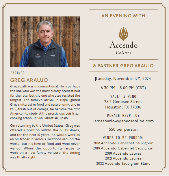 I am EXTREMELY pleased to offer this upcoming event! Opus One is one of the Foremost ICONIC wineries in the world! My TOP PICK OF 2024 was Opus One’s 2021 release, which we will be tasting. The wines just seem to raise the bar year after year for being the standard of Napa Valley. So, please join me for a RARE multiple vintages tasting of Opus One and Overture with National Sales Director, Greg Miller, leading us through the history and brilliance of these wines. TICKETS WILL BE LIMITED TO THE FIRST 50 RSVPS! Don’t miss out on this SPEC-tacular opportunity! See you there!