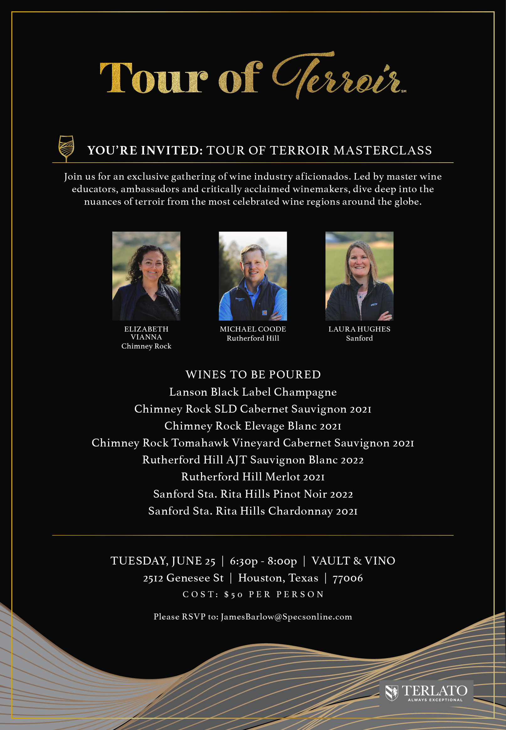 I have a unique experience for you all to enjoy with THREE wineries joining us to talk about terroir in California. They will be pour some specially selected wines to show off the terroir of their particular regions while talking us through the nuances and soils that make their wines so unique. This should be a SPECIAL experience, that will not be duplicated!